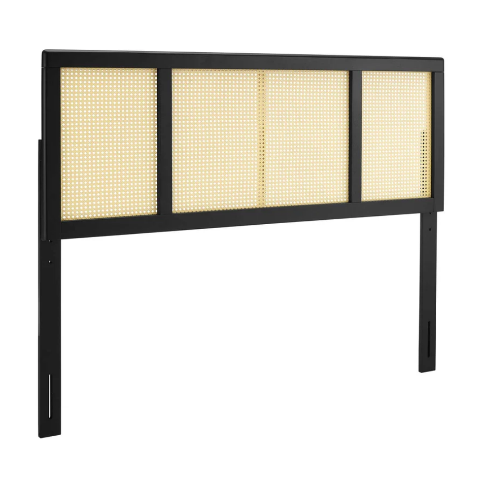 Cane headboards add a beautiful, vintage texture to your bedroom. Clean lines and contrasting black wood keep this one from feeling dated.