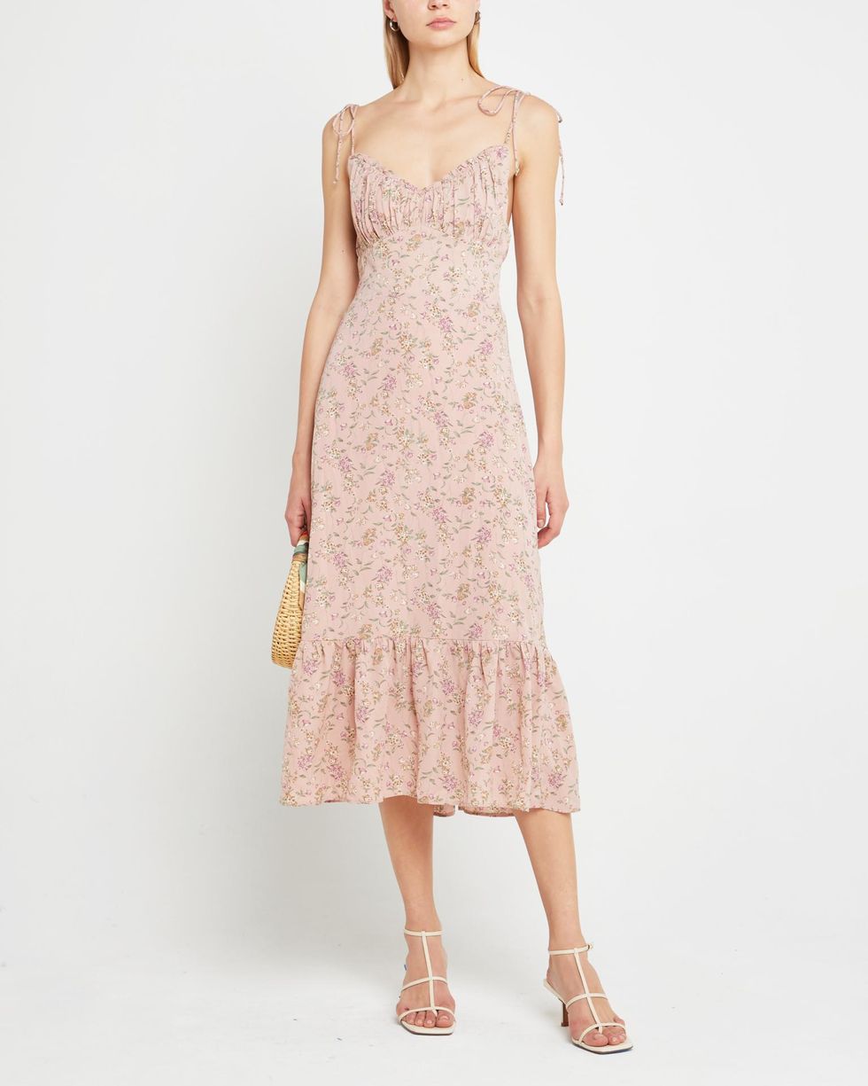 Wedding season is back, and busier than ever. If you're feeling like you spend every other summer weekend in attendance, only to spend the few weekends in between recovering—and shopping—for your next event, you're certainly not alone. While it's wonderful to watch our loved ones wed, we all know how quickly the celebrations can add up, and we're here to remind you there's absolutely no shame in repeating a wedding guest dress a few times—or all season long! In fact, you'll find floral dresses can go a long way, as their multi-colored prints allow them to be styled with different accessories for a new look each time (of course, it's best to avoid florals with distinctly white backgrounds or largely white prints). If you're juggling several different wedding themes in one season, say beach unions and backyard weddings or destination celebrations and traditional ceremonies, invest in one floral print that can adapt across locales, or scoop up a few extra-affordable picks and assign one to each setting. Ahead, our favorites to help you get through the wedding season and all your formal festivities this summer.