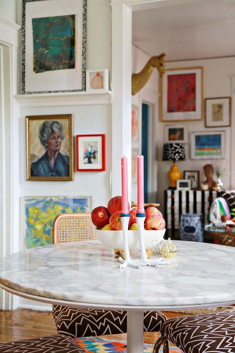 Balancing colorful artwork with neutral furniture make this room feel welcoming to the max. (via Amanda Evanston Photography / Design*Sponge)