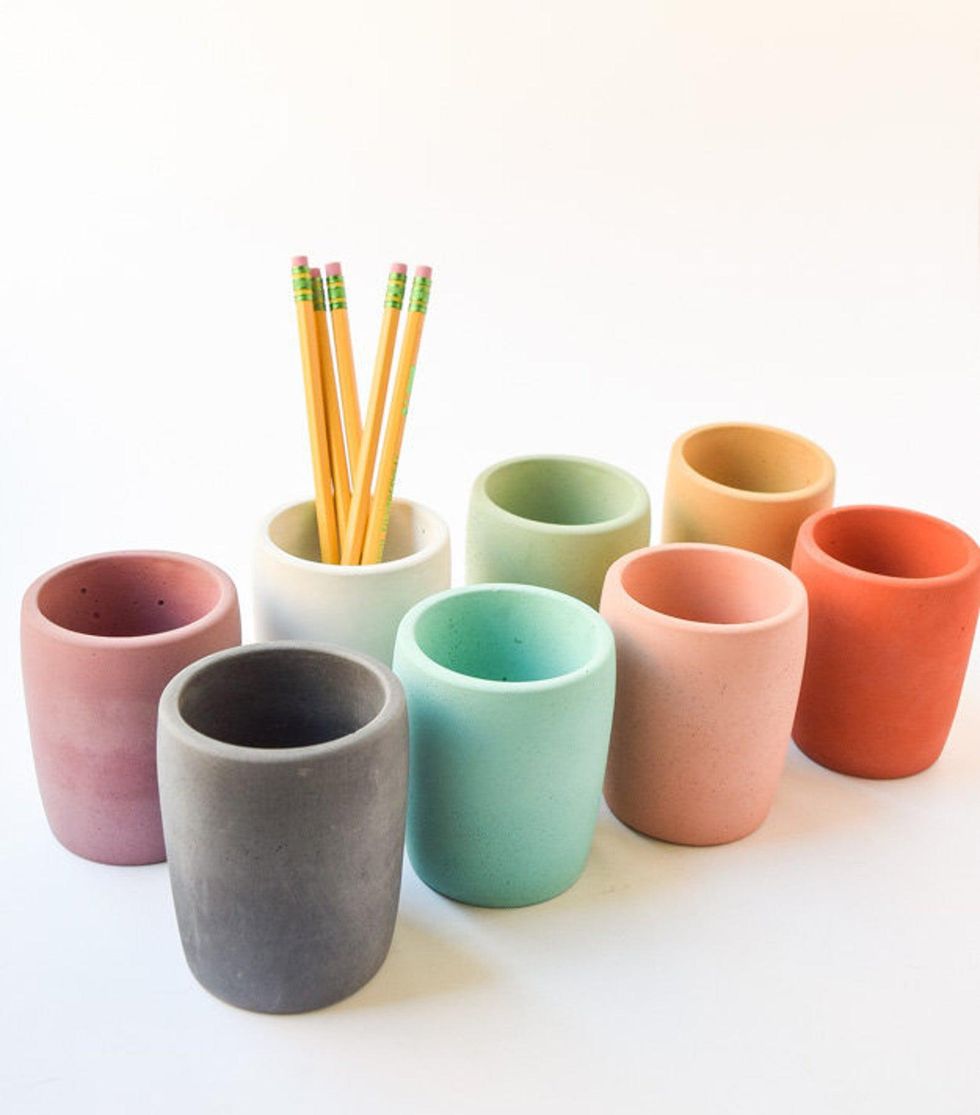 I adore these tinted concrete cups to hold my favorite graphic pens and other desk essentials like paper clips. They work nicely as a toothbrush holder too! — Theresa Gonzalez, Branded Editor