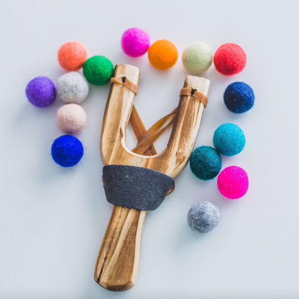 We love a good old-timey gift with a modern edge. These simple wooden slingshots are perfect for any kid who loves to get outside and play, no matter what the weather. Each slingshot comes with 15 colorful felt balls for gentle play. ($16)