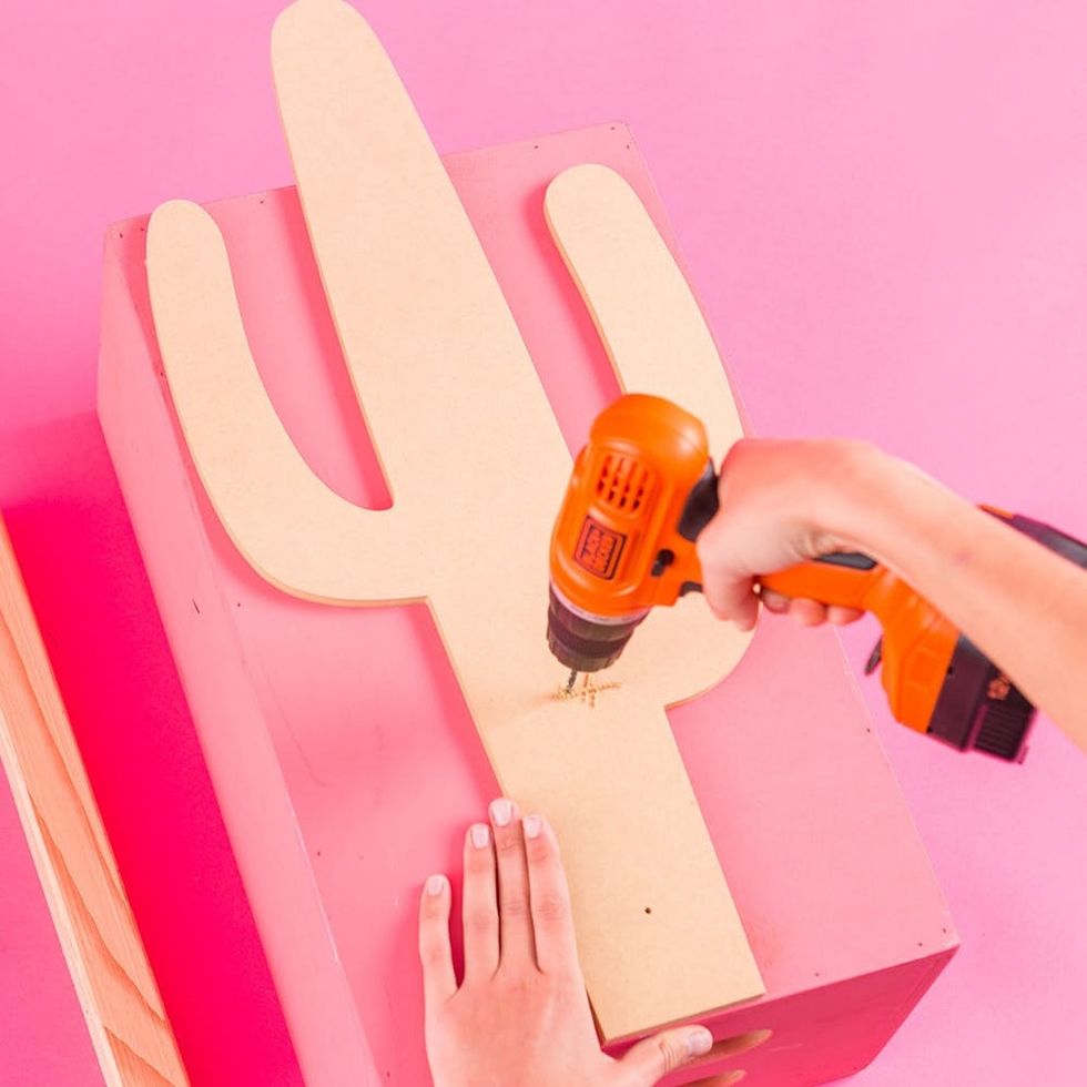 - Glue the second cactus cutout on top of the drilled cactus to hid the screws.