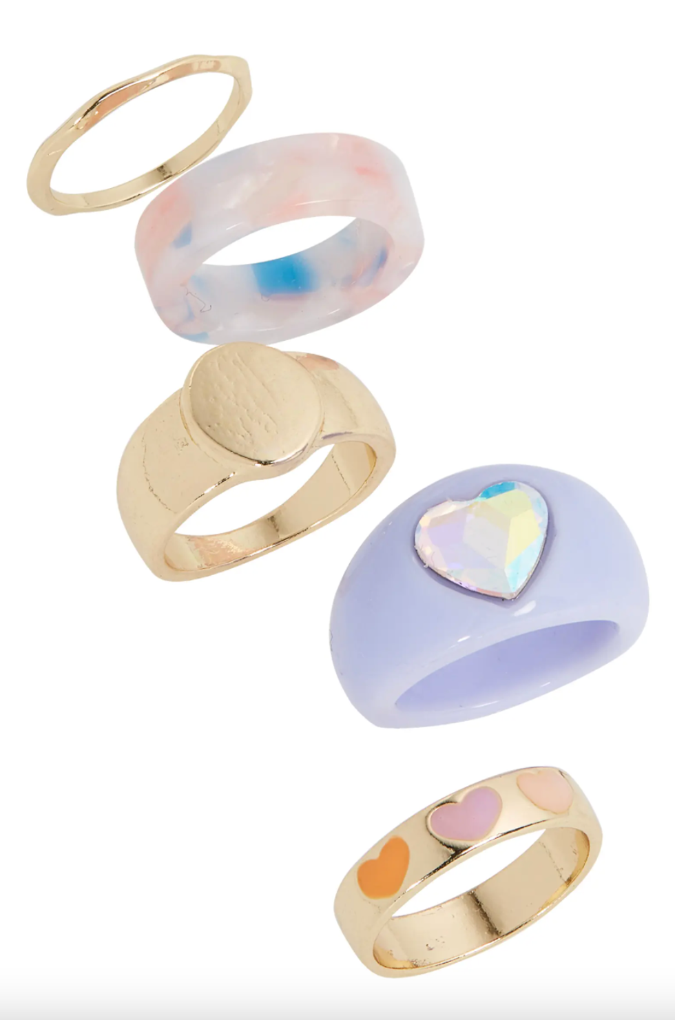 It's hard to believe this set of chunky, youthful, on-trend rings is only EIGHT dollars! Mix and match them for a full styled look, or rock one at a time — your choice.