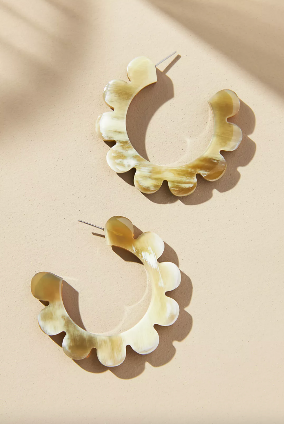 Soak up the sunshine in these bright, sunny, floral hoops. When rocking statement earrings, we personally love going necklace-free. Throw your hair in a cute ponytail to show them off, or style your locks with a voluminous '70s silhouette.