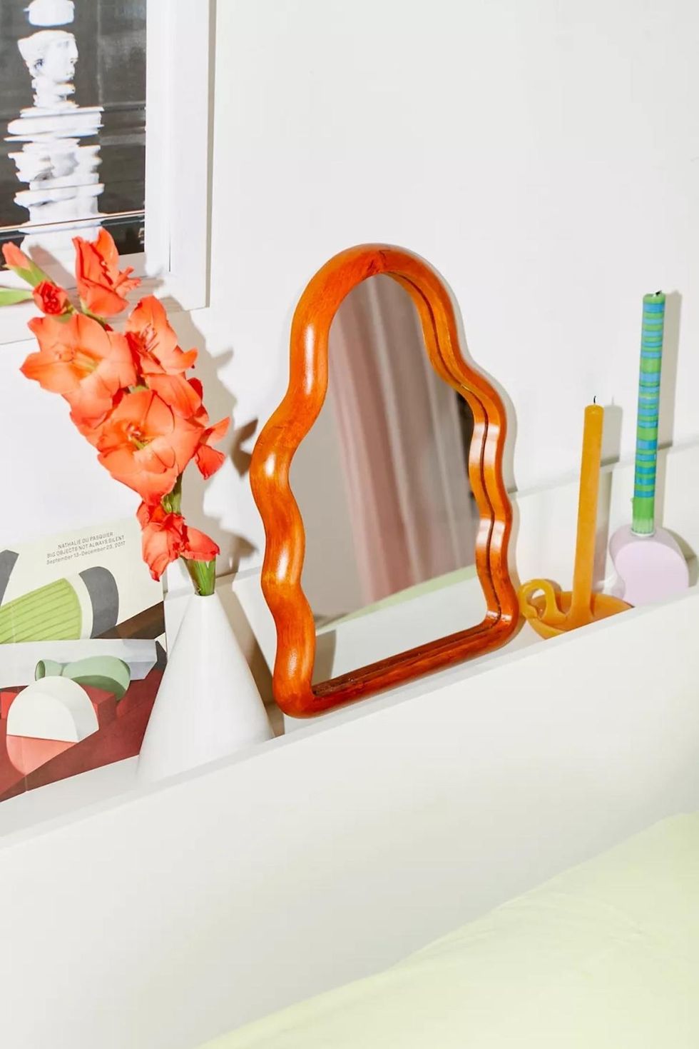 We're big fans of using funky mirrors as art, and this wavy, mini mirror is the perfect size to pop on your vanity. It's great for people who want to try out a fun piece that's not a rectangle or a circle because it lets you add personality to your space without committing to a crazy color.