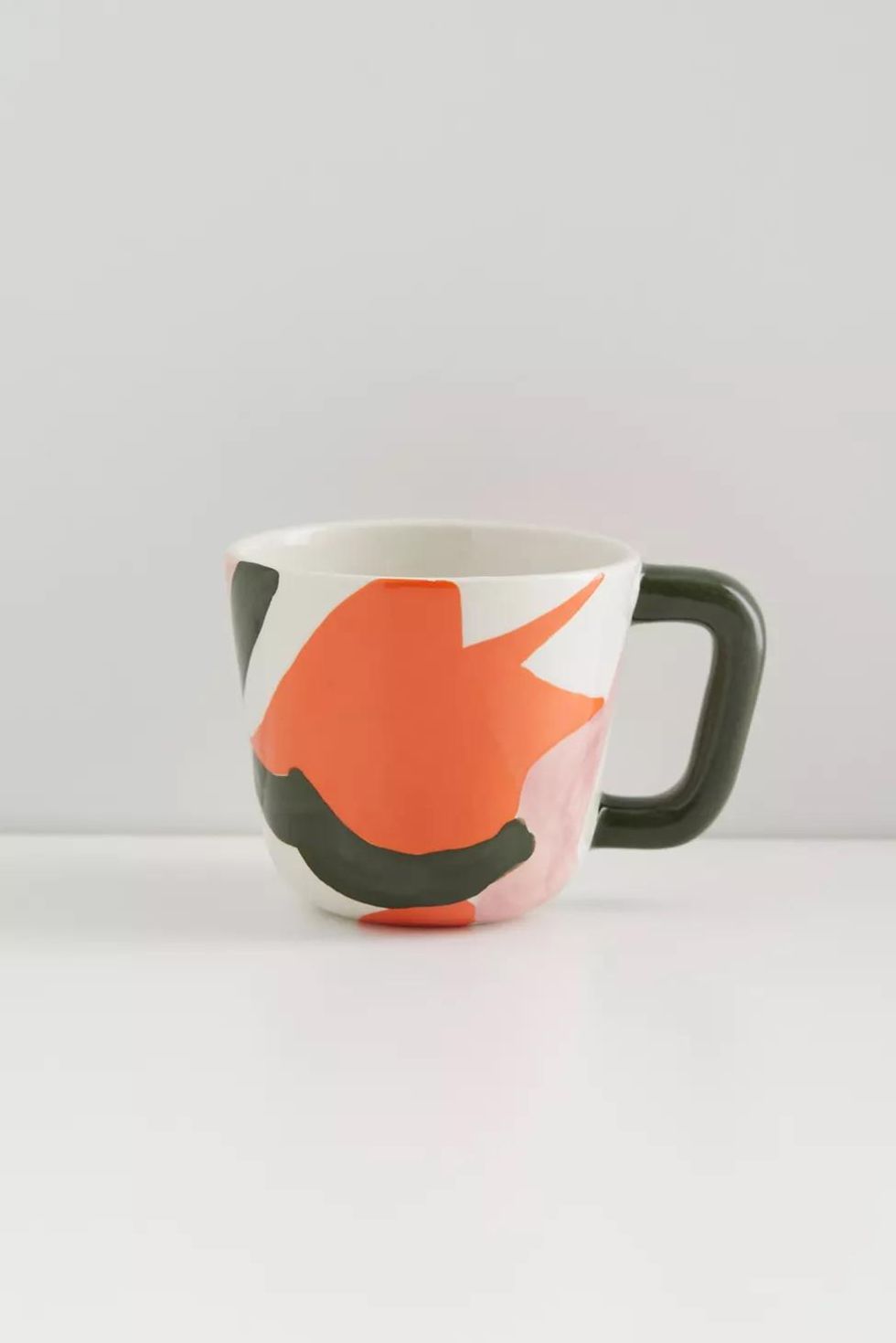 Splashes of dark green, pink, and coral give this mug an abstract twist on fall.