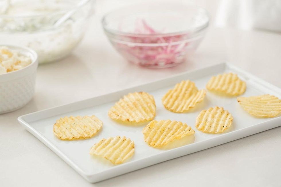 We know that potato chips aren't the most healthy snack on the planet but they have their benefits when eaten in moderation. Potatoes are actually a great source of potassium, and if you're feeling nauseous, they're an easy-to-digest option. We love adding some Frank's Red Hot Buffalo Wing Sauce on top to spice things up! Not a fan of potatoes? There are tons of alternatives, from beet chips to carrot chips. We especially love Harvest Snaps' Baked Veggie Snacks for a healthy and salty crunch in a variety of flavors — from Mango Chili Lime to Parmesan Roasted Garlic.