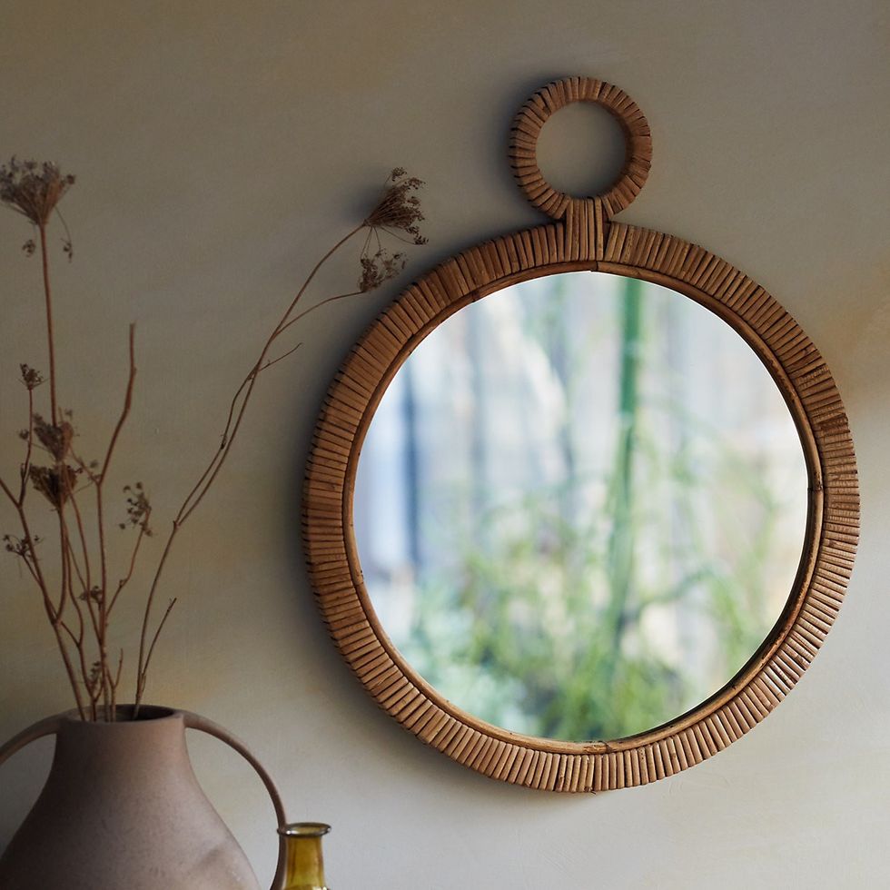 Bring natural textures and an organic feel to your home decor with this round Rattan Wall Mirror. The intricate weave of the rattan frame lends a rustic, bohemian charm to any space. The round shape of the mirror softens the look of the room, creating a warm and inviting atmosphere.