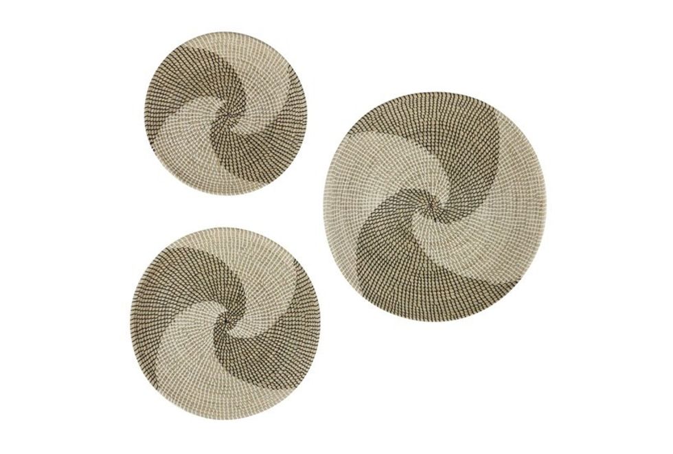 This wall art set is perfect for creating a cohesive and charming look in any room of your home. The woven seagrass material gives a natural look that blends perfectly with a bohemian or coastal décor style. The neutral beige color adds warmth and texture to any wall it's placed on.