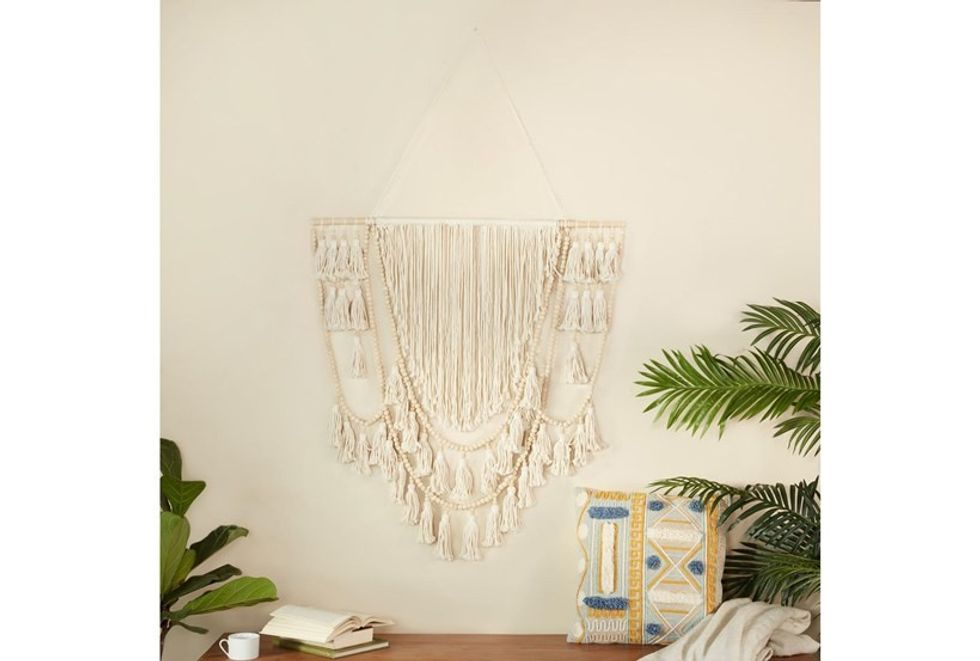 Living Spaces Beige + White Bead Macrame Boho Wall Hanging ($125)