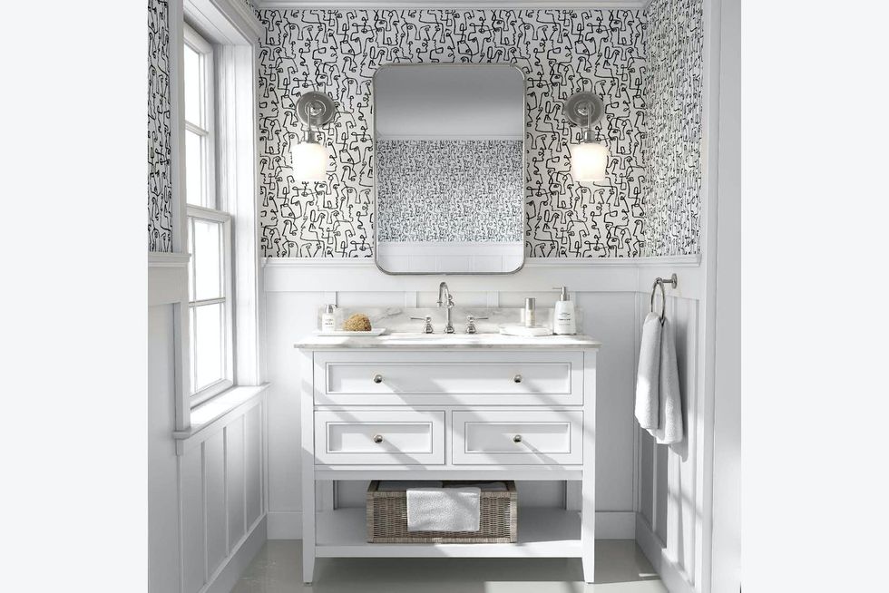 Bring a playful and charming touch to your powder room with this Danish pastel wallpaper, perfect for embracing the spring trend. Plus, it's removable for easy switching when ready for a new look!
