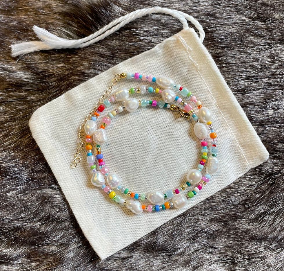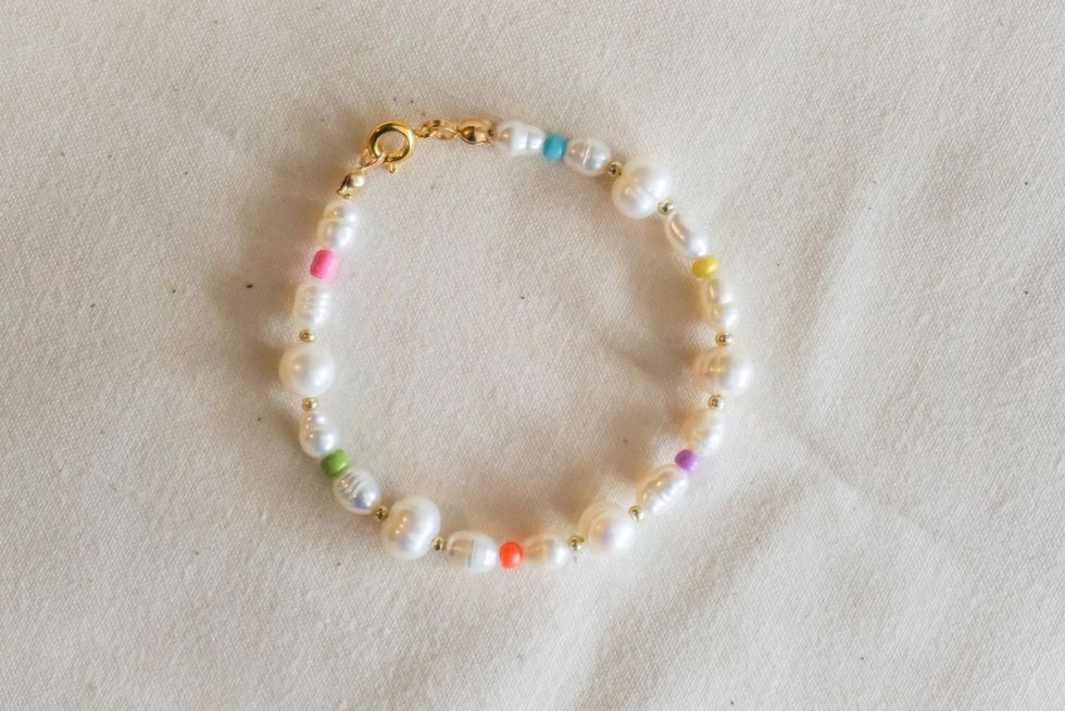 Who doesn't love pearls and colorful beads! Bring both to your outfits with this bracelet.