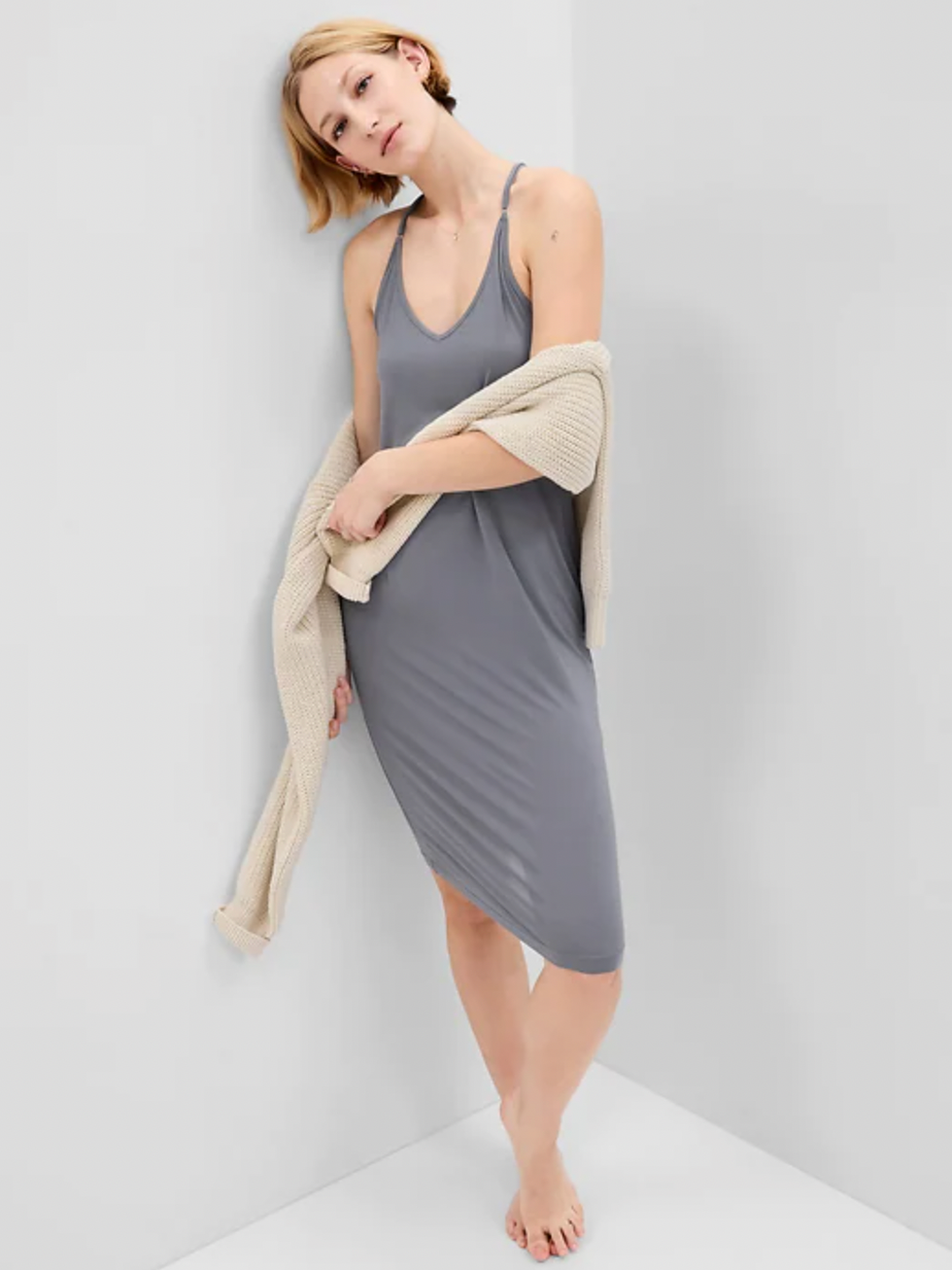 A pajama dress in warmer months is an easy bed-to-breakfast transition piece. Made from a sustainable and soft modal fabric, this racerback nightie has a bit of stretch too to keep mom feeling comfy and cute day or night.