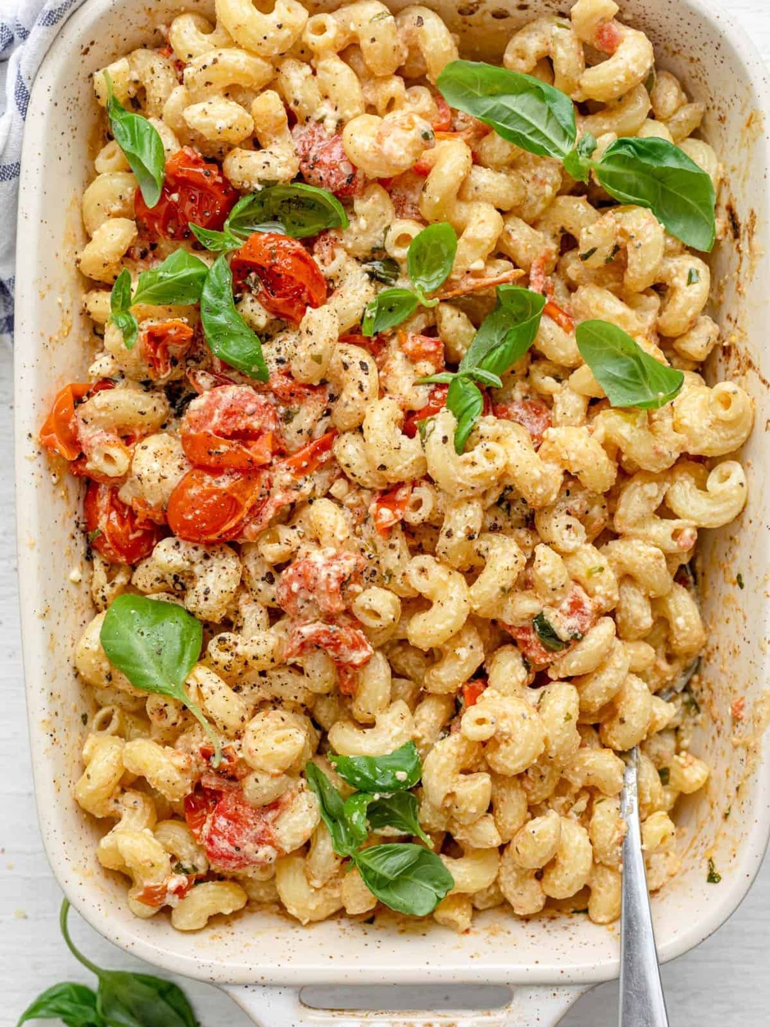 Made with fresh ingredients like feta, garlic and basil, this baked pasta is delectable. What helps give this dish it's impactful flavor are the cherry tomatoes, but don't let their small size fool you — they pack a powerful burst of flavor. (via Feel Good Foodie)