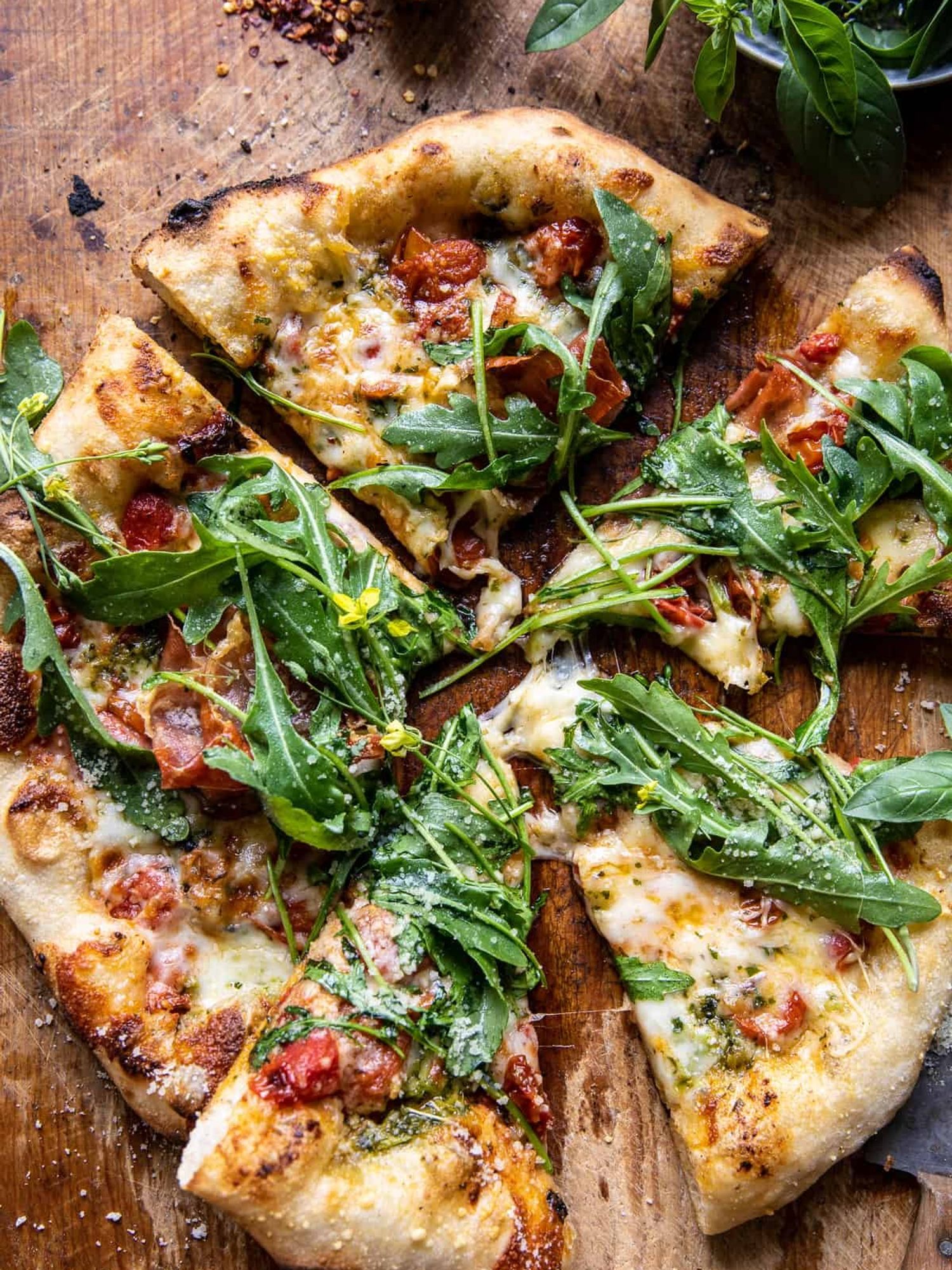 Without a doubt, this pizza recipe takes center stage! Embark on a flavor-filled journey to Italy with this delightful arugula, tomato, and cheese pizza! The combination of tangy tomatoes, creamy cheese, and fresh arugula will transport you to the streets of Rome in every bite. (via Half Baked Harvest)