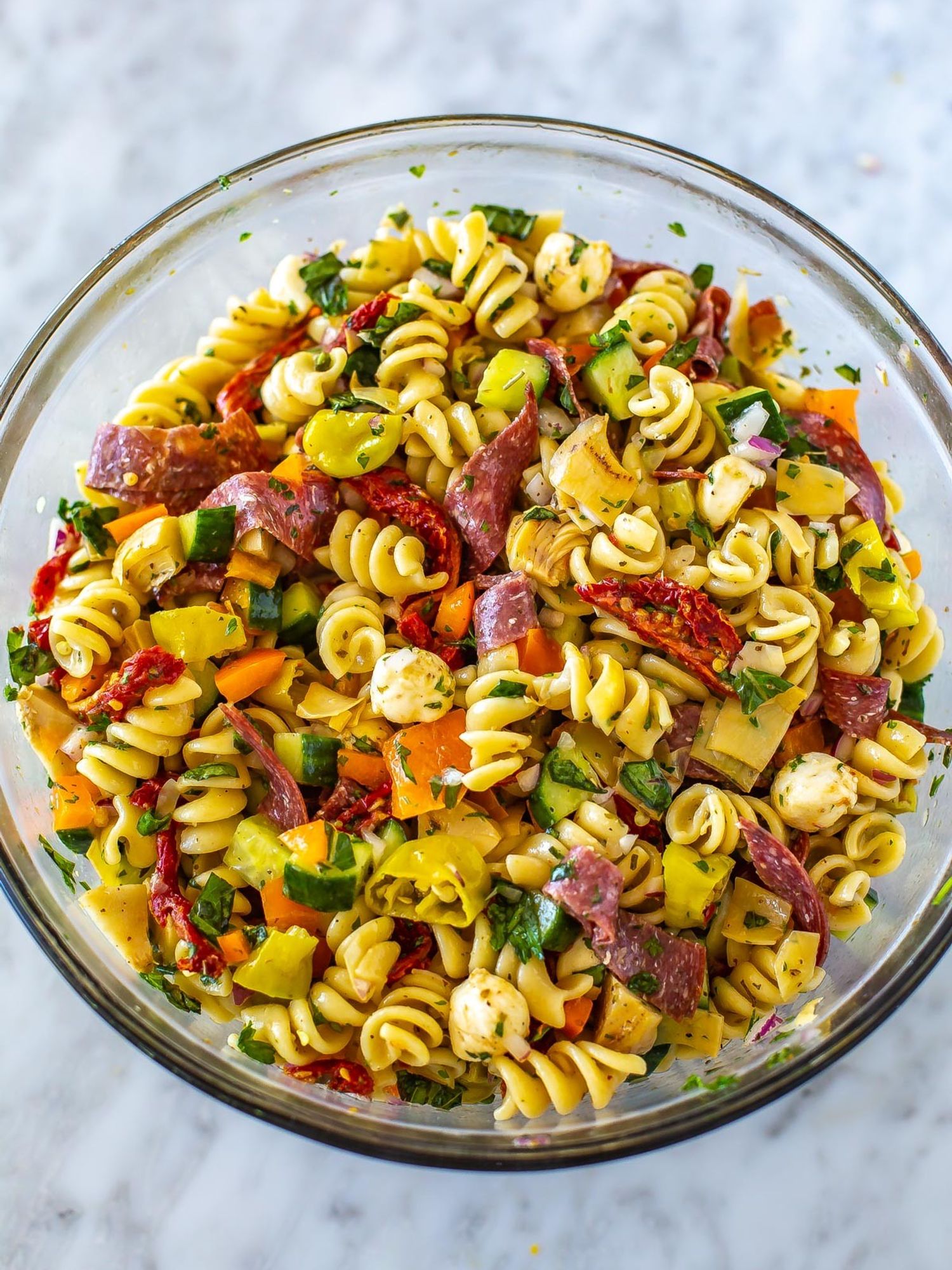 This delightful Italian pasta salad recipe is giving Italian sunshine. Packed with vibrant colors, fresh ingredients, and zesty Italian dressing, it's the perfect dish to bring to picnics, potlucks, or enjoy on a sunny day. Mangia! (via The Girl on Bloor)