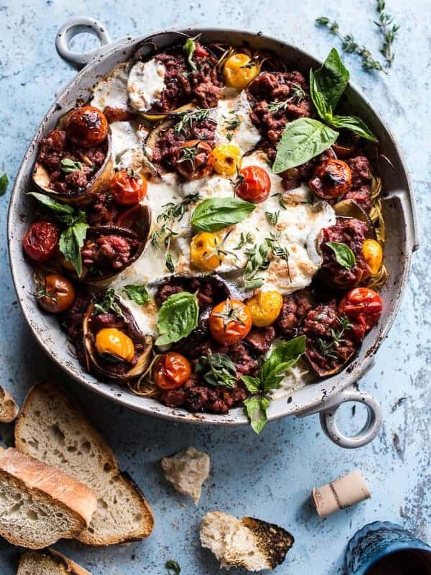 Can't get enough of eggplant? Try this Italian Turkey and Tomato Basil Eggplant Roll, too! This dish calls for fresh ricotta and mozzarella cheese which is perfect if you love cheese as much as we do. (via Half Baked Harvest)