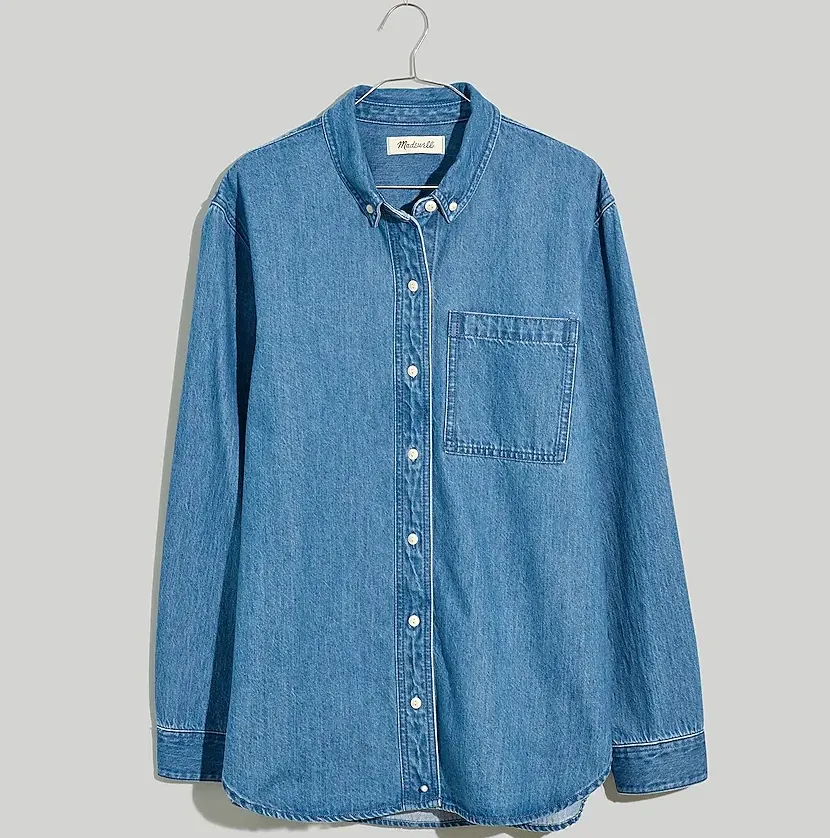 Denim Button-Down Collar Oversized Shirt in Cranover Wash ($75, was $88)