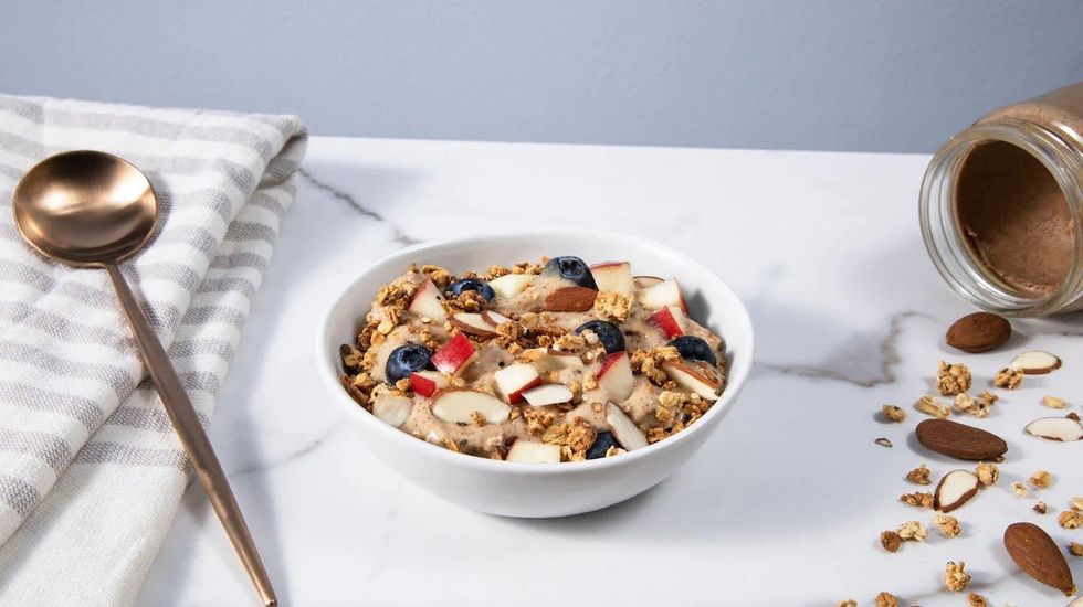 Filled full of protein and fiber, this pre-made smoothie bowl featuring a blend of bananas, apples, and blueberries makes for the perfect breakfast or post-workout bite.