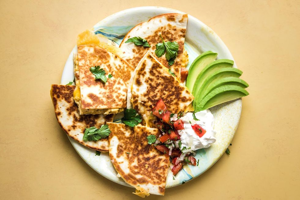 Freezer instructions make this filling breakfast quesadilla a cinch to heat up in a time crunch, and with an absence of spicy ingredients, picky eaters will love this borrowed-from-dinner take on the classic bacon, egg, and cheese. (via The Modern Proper)