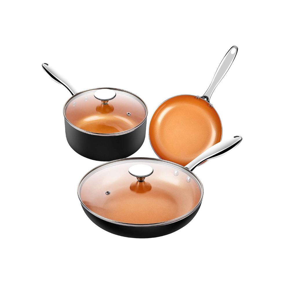 Get all of your cookware essentials in one go with this 5-piece set. Each piece is coated with a non-stick coating that is scratch-resistant, allowing you to use less oil or butter!