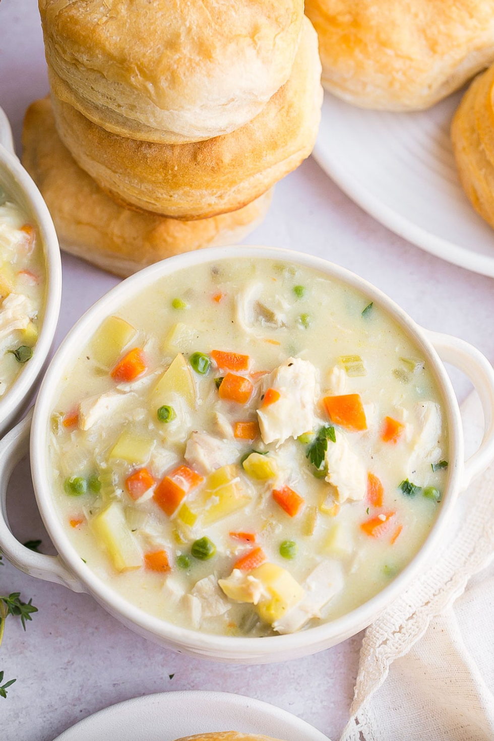 This healthy Chicken Pot Pie Soup is loaded with tender chicken, fresh veggies, and fresh herbs for the ultimate healthy lunch. (via Kathryn's Ktichen)