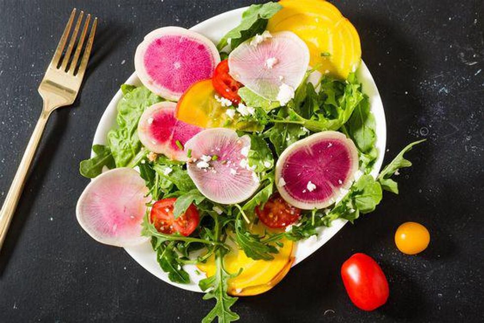 This one takes little preparation, and packs a good veggie punch with so pretty (and crunchy!) watermelon radishes.
