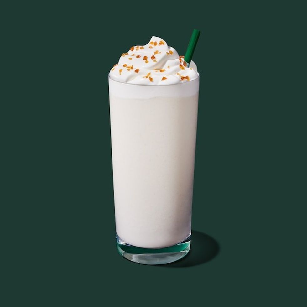 This Frapp is flavored with one of the best seasonal syrups, Caramel Brulée, and gets topped with whipped cream and little bruléed bits.